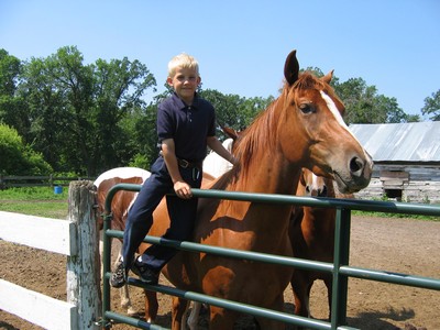 wasn't quite riding it, -yet! Matthew enjoys looking at the horses